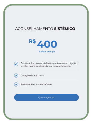 Atua também como facilitador em Constelações Sistêmicas uma das abordagens mais profundas e transformadoras do autoconhecimento que promove reconexão com a ancestralidade, compreensão das dinâmicas ocultas e transformação de padrões repetitivos, dificuldades e desequilíbrios que impactam nossa vida.